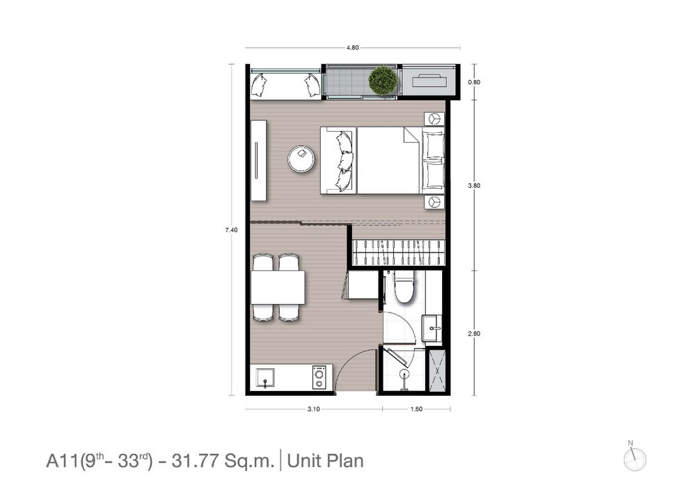 ขนาดห้อง 31.77 - 36.61 ตร.ม.
