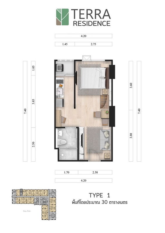 ขนาดห้อง 30 - 0 ตร.ม.