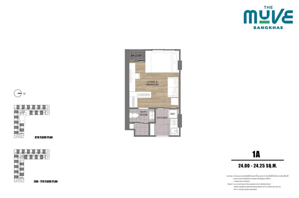 ขนาดห้อง 24.00 - 24.25 ตร.ม.